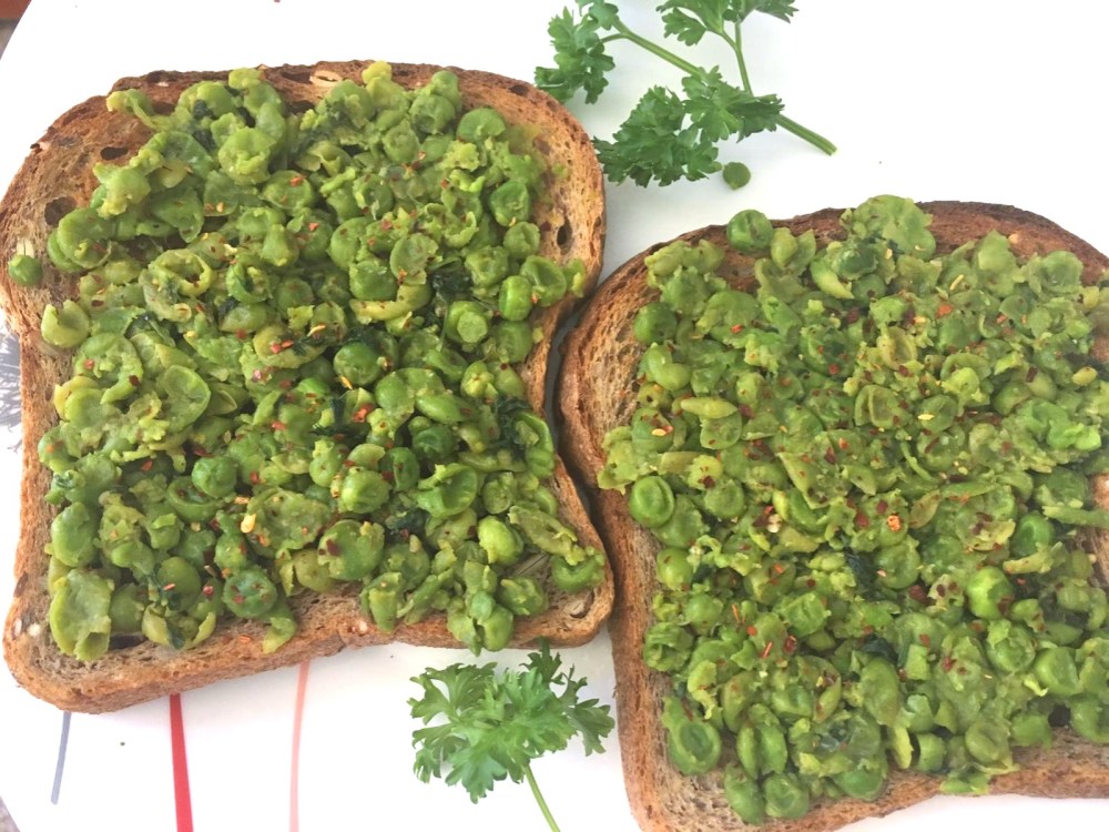 - Scoop a generous amount of the pea mash onto a crisp toast, spread and enjoy!