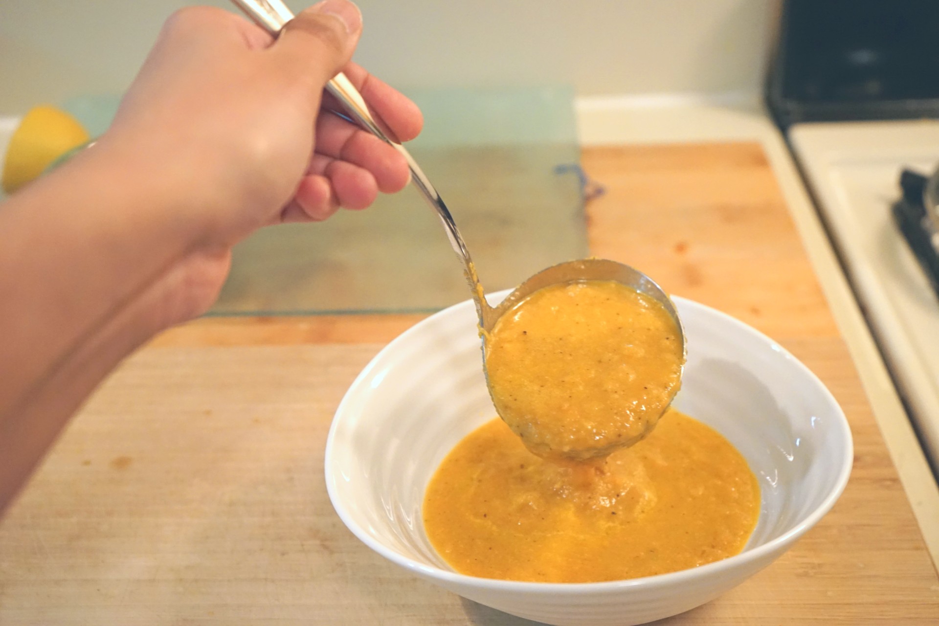 5. Add the blended soup to a pot and simmer for 5-10 minutes. During this time, adjust the spice and consistency as desired