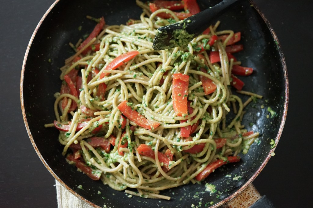 Who doesn’t love Spaghetti? And who doesn’t love Pesto? Of course, we all do. But, did you know Pesto can be a sneaky way to incorporate leafy green vegetables into your diet?