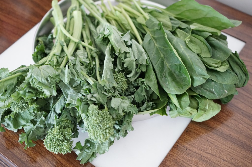 Mustard Greens have always intrigued me. They look similar to Kale but are much more delicate with their frilly, ruffled look. Unlike the Kale or Spinach, Mustard Greens have a sharp, peppery flavor which mellows after cooking but is still distinct. To further cut through the peppery flavor, these greens are cooked with a combination of other greens (Spinach in this case). Mustard Greens are packed with a variety of nutrients such as antioxidants, iron and calcium (just like its other green counterparts). And yes, mustard seeds come from the mustard plant! But that story is for another day.