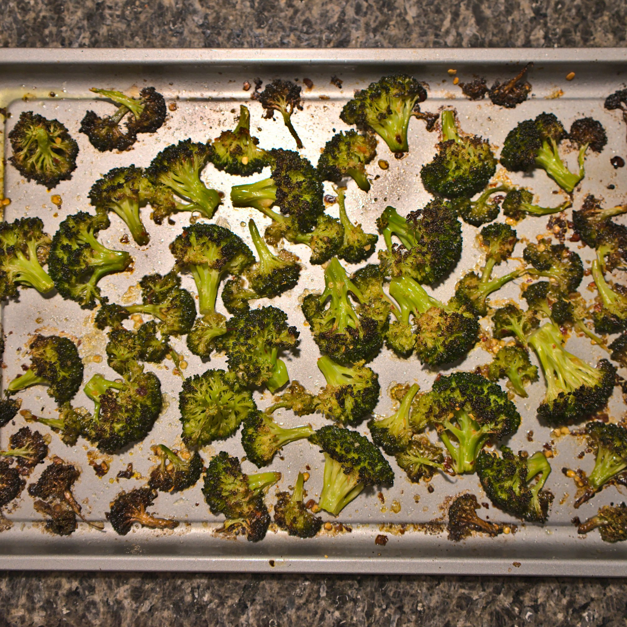 - Place the florets on the baking tray in a single layer for even roasting