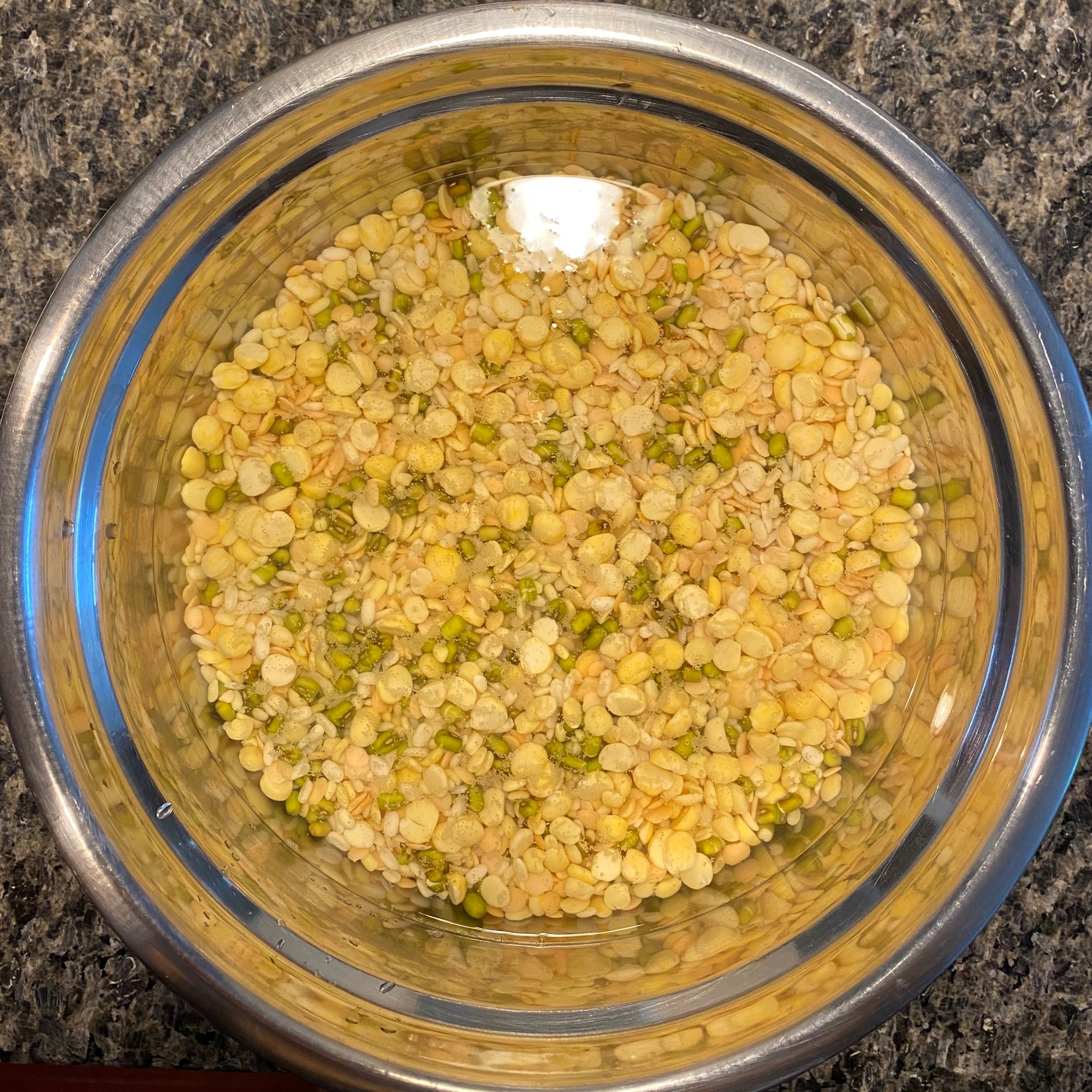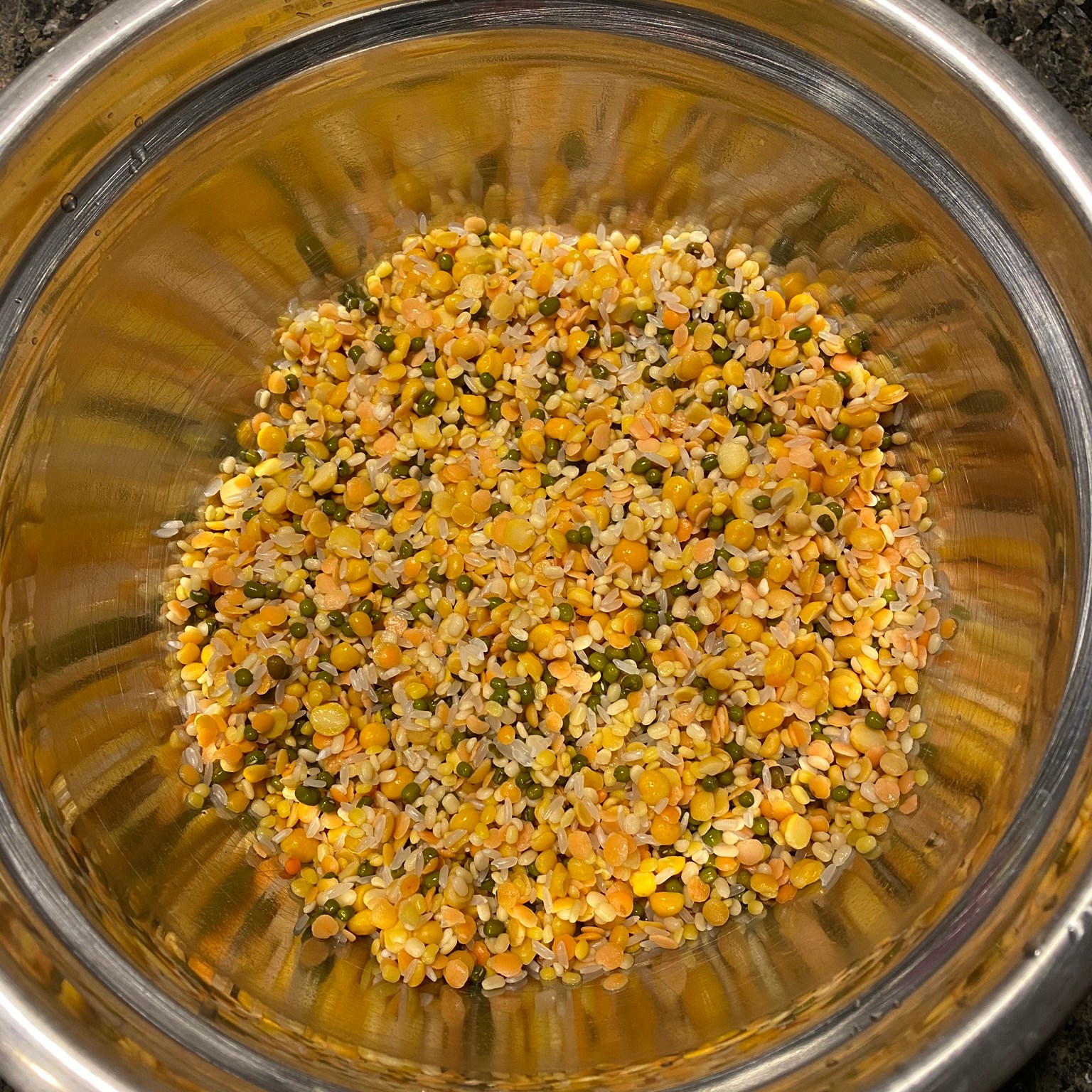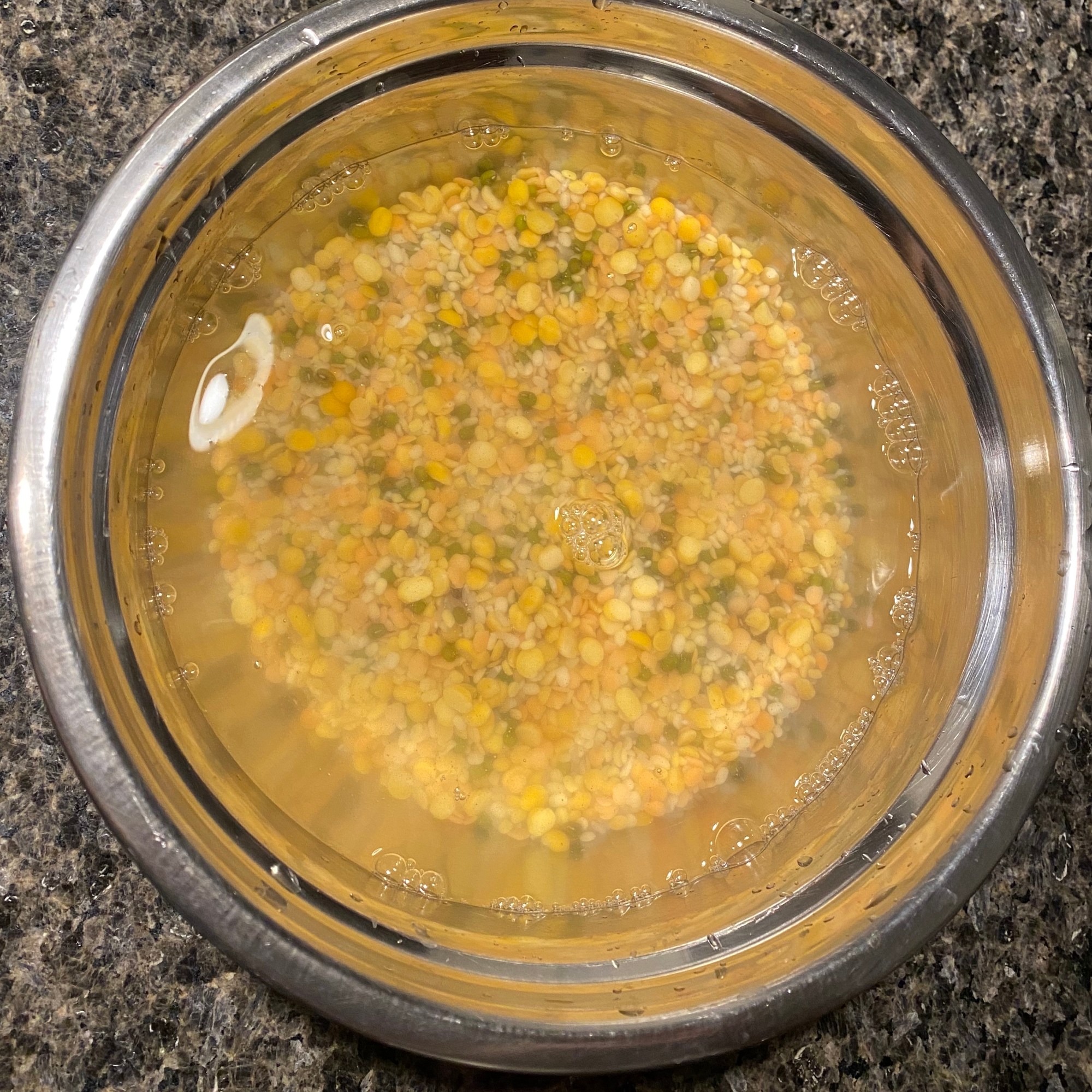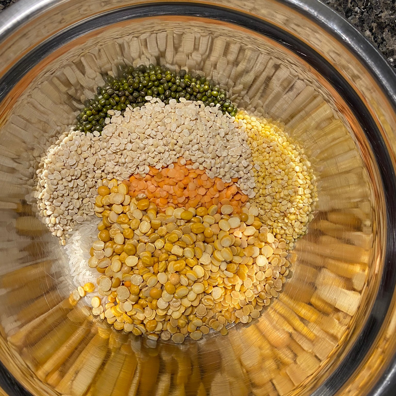 - Place all the lentils and grains in a bowl. Wash under cold running water until the water is clear. Add water and soak overnight (Approx. 10-12 hours)
