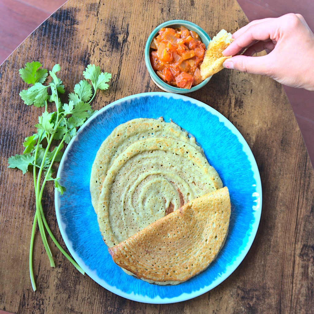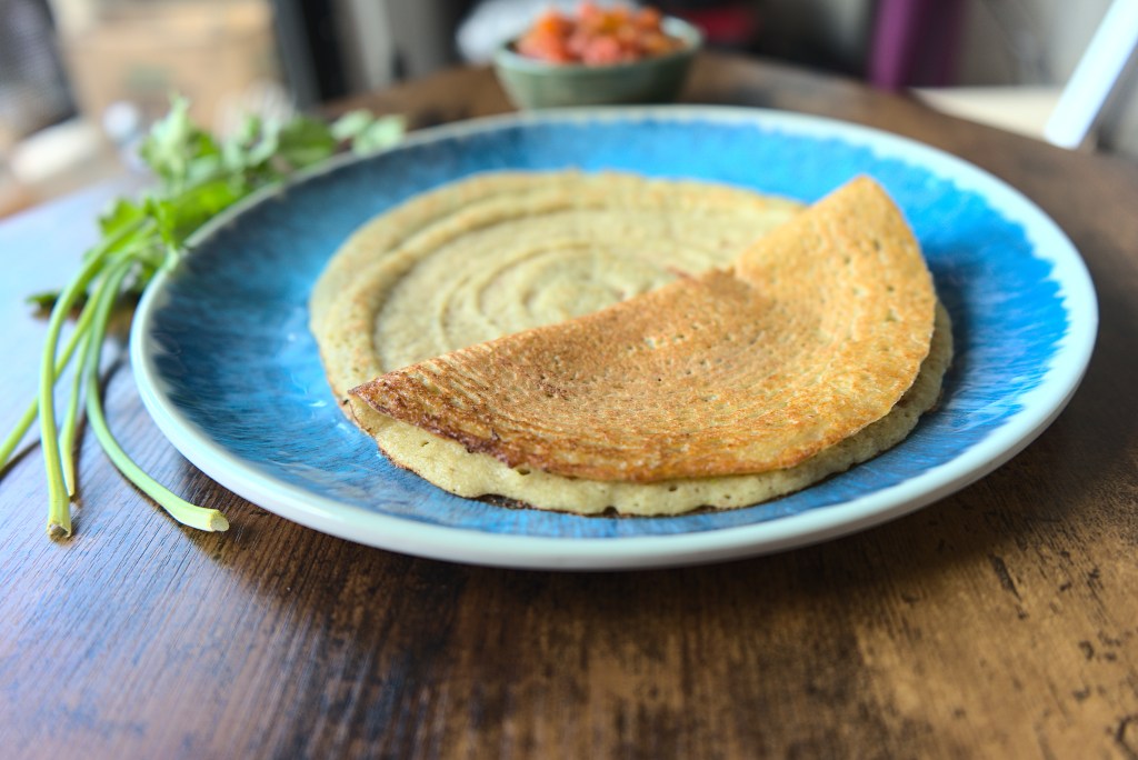 Dosa (Lentil Crepes) is the quintessential, and a staple, south Indian breakfast. All south Indians, and all Indians for that matter have grown up eating Dosas. For me, it was just one of those things that was always at home. Don’t have anything else to eat, let’s make a Dosa. Need a snack? Let’s make Dosa. Quick breakfast, let’s make Dosa. But, when I moved away from home, making Dosa became a far fetched dream, simply because of the process involved in preparing, fermenting and grinding the batter. It only took 2 years of video calls with my mum to perfect the batter.