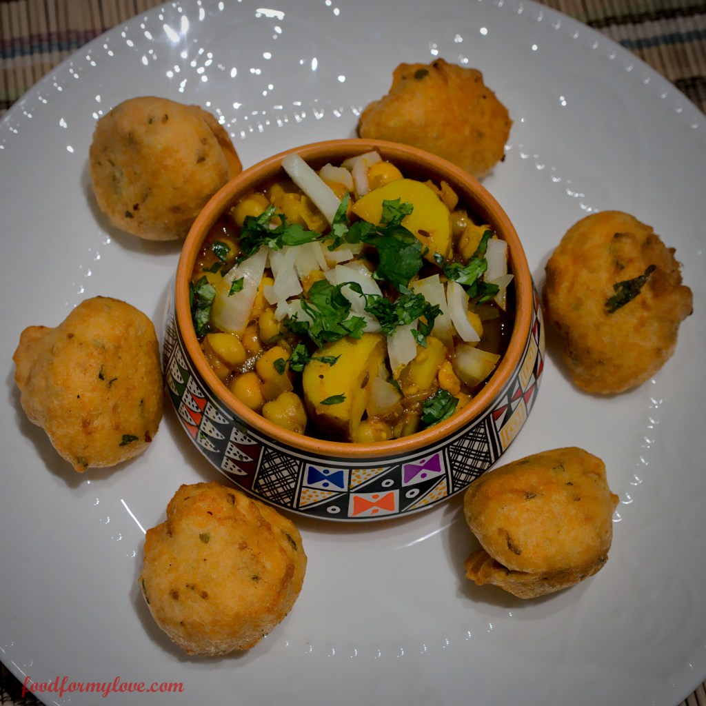 Vada Ghugni (Or Bara Ghugni) is a popular street food in eastern Indian states such as West Bengal and Orissa. But, first, what is it? Bara or Vada is exactly what it says, a regular Urad Dal Vada. Ghugni is interesting, because at first I thought it was just a regular Chole/Channa Masala. But in exploring different recipes, I learnt that the Ghugni is different not just in the spices it uses but also that is has Potatoes in it, and the key difference being that Ghugni uses dried white or yellow peas (or even Kala Channa [Brown Chickpeas] in states like Bihar and Jharkand) that are soaked and cooked.